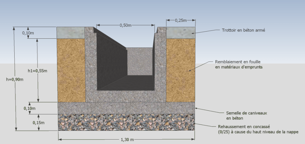 Analyse des procédés de collecte et d’évacuation des eaux pluviales de la route. Integration de réseaux de conduits et bassin de rétention.